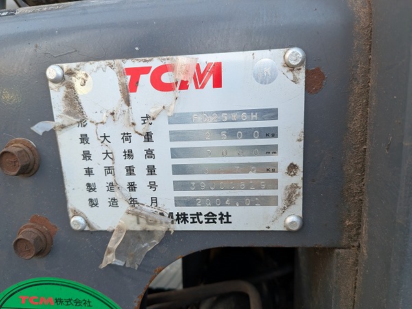 FORKLIFT/ TCM/ FD25W6H/ 39J00819/ 7437h