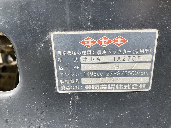 ISEKI/ TA270F/ 00441/ 811h 2025-07-19 Spec: MAKER: ISEKI MODEL: TA270F NUMBER: 00441 HOUR METER: 811h CONDITION: GOOD APPEARANCE (VERY NICE) AND GOOD CONDITION, WITH POWER STEERING Inquire about this item. Note: Related posts: ISEKI/ TU170F/ 01949/ 846h ISEKI/ TF193F/ 003996/ 988h ISEKI/ AT46F/ 001451/ 4358h ISEKI/ TS1610S/ 010204/ 657h ISEKI/ TU155F/ 00511/ 1141h Tractor | Tags: ISEKI