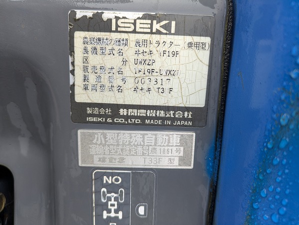 ISEKI/ TF19F/ 003317/ 1025h 2025-10-02 Spec: MAKER: ISEKI MODEL: TF19F NUMBER: 003317 HOUR METER: 1025h CONDITION: GOOD APPEARANCE AND GOOD CONDITION, WITH POWER STEERING,EX OWNER REPAINTED THE BODY Inquire about this item. Note: Related posts: ISEKI/ TH24F/ 001475/ 1224h ISEKI/ TA317F/ 01775/ 3214h ISEKI/ TK25F/ 003365/ 2019h ISEKI/ THS22F/ 001572/ 769h ISEKI/ TU167F/ 03176/ 1546h Tractor | Tags: ISEKI