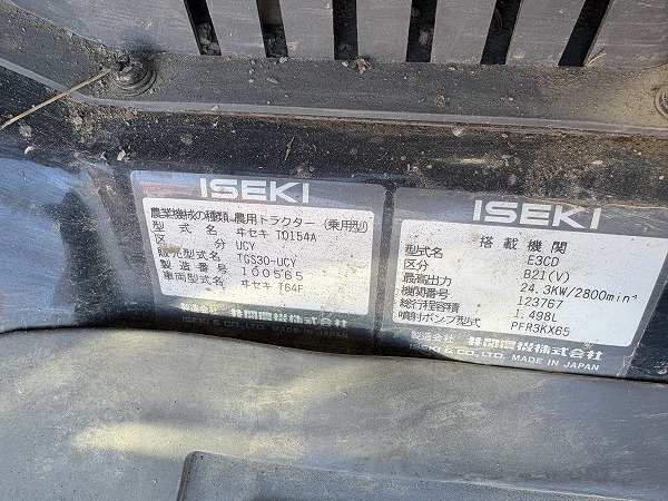 ISEKI/ TGS30F/ 100565/ 2342h 2025-06-19 Spec: MAKER: ISEKI MODEL: TGS30F NUMBER: 100565 HOUR METER: 2342h CONDITION: GOOD APPEARANCE AND GOOD CONDITION, WITH POWER STEERING,AIR CONDITIONER (NO COLD AIR IS COMING OUT) AND CABIN Inquire about this item. Note: Related posts: ISEKI/ TU1600F/ 02335/ 30h ISEKI/ TA295F/ 00124/ 1667h ISEKI/ TU167F/ 00378/ 745h ISEKI/ TK21F/ 000204/ 479h ISEKI/ TU217F/ 01681/ 983h Tractor | Tags: ISEKI