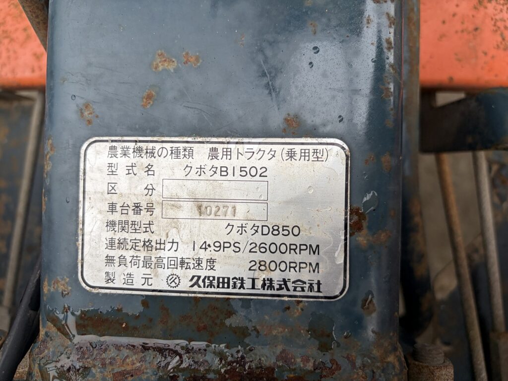 KUBOTA/ B1502S/ 10271/ 352h