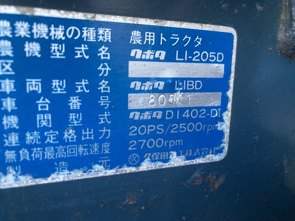 KUBOTA/ L1-205D/ 80521/ 1267h 2025-10-02 Spec: MAKER: KUBOTA MODEL: L1-205D NUMBER: 80521 HOUR METER: 1267h CONDITION: GOOD APPEARANCE (VERY NICE),WATER LEAKS FROM WATER PUMP PARTS Inquire about this item. Note: Related posts: KUBOTA/ A-195D/ 12612/ 1390h KUBOTA/ KL33D/ 22927/ 4226h KUBOTA/ B6000D/ 39283 KUBOTA/ B7001D/ 34022 KUBOTA/ L1-22D/ 67691/ 1456h Tractor | Tags: KUBOTA