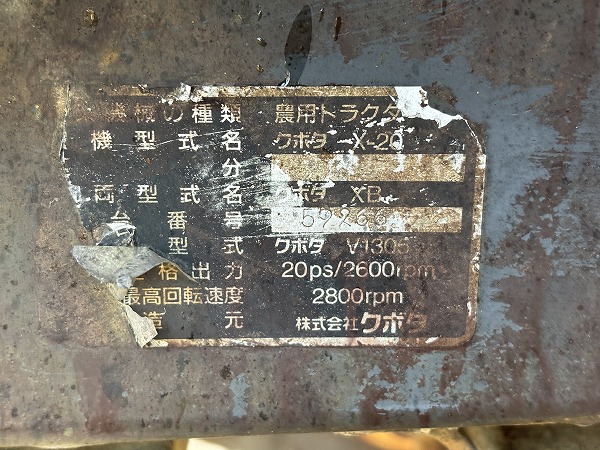 KUBOTA/ X-20D/ 59268/ 669h 2025-12-04 Spec: MAKER: KUBOTA MODEL: X-20D NUMBER: 59268 HOUR METER: 669h CONDITION: GOOD APPEARANCE AND GOOD CONDITION,WITH HALF CABIN,NO ROTARY Inquire about this item. Note: Related posts: KUBOTA/ L1-20D/ 53973/ 908h KUBOTA/ A-155D/ 15054/ 1208h KUBOTA/ A-17D/ 12559/ 1405h KUBOTA/ GL200D/ 32440/ 1378h KUBOTA/ B7001D/ 40347 Tractor | Tags: KUBOTA