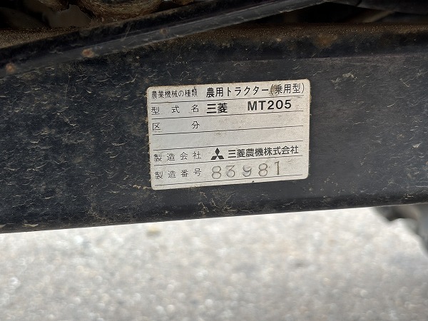 MITSUBISHI/ MT205D/ 83981/ 869h 2025-10-02 Spec: MAKER: MITSUBISHI MODEL: MT205D NUMBER: 83981 HOUR METER: 869h CONDITION: GOOD APPEARANCE AND GOOD CONDITION,WITH CANOPY Inquire about this item. Note: Related posts: MITSUBISHI/ MT2001D/ 51238/ 1271h MITSUBISHI/ MT201D/ 93703/ 600h HINOMOTO/ E2004D/ 00717/ 1052h MITSUBISHI/ MT165D/50705/ 441h MITSUBISHI/ MT16D/ 505908/ 1715h Tractor | Tags: MITSUBISHI