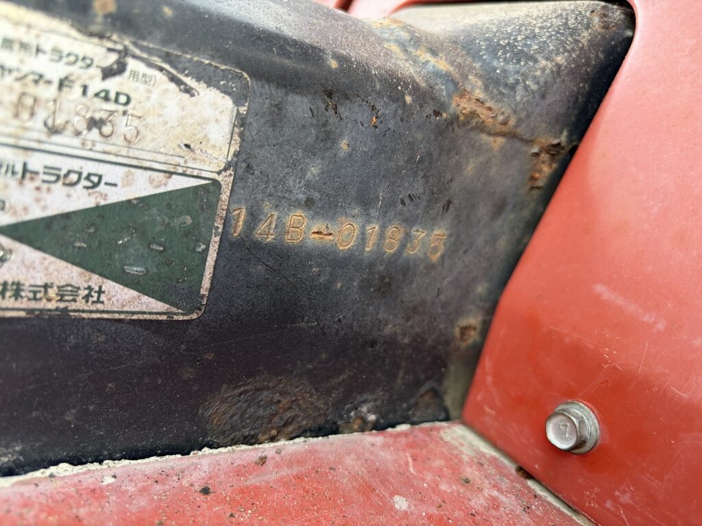 YANMAR/ F14D/ 01835/ 640h 2026-02-26 Spec: MAKER: YANMAR MODEL: F14D NUMBER: 01835 HOUR METER: 640h CONDITION: GOOD APPEARANCE, SIDE COVER IS YANMAR F15'S, NO ROTARY Inquire about this item. Note: Related posts: YANMAR/ F13D/ 00565/ 375h YANMAR/ FX255D/ 50451/ 1411h YANMAR/ RS24D/ 05657/ 1739h YANMAR/ YM1702D/ 00172/ 494h YANMAR/ Ke-2D/ 02912/ 836h Tractor | Tags: YANMAR