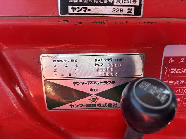 YANMAR/ FX22D/ 03296/ 909h 2025-06-10 Spec: MAKER: YANMAR MODEL: FX22D NUMBER: 03296 HOUR METER: 909h CONDITION: GOOD APPEARANCE (VERY NICE) AND GOOD CONDITION, WITH CANOPY Inquire about this item. Note: Related posts: YANMAR/ A-10D/ 300058/ 408h YANMAR/ F230D/ 00324/ 986h YANMAR/ YM1500S/ 14808/ 286h YANMAR/ AF333D/ 60949/ 1673h YANMAR/ FX22D/ 00875/ 924h Tractor | Tags: YANMAR