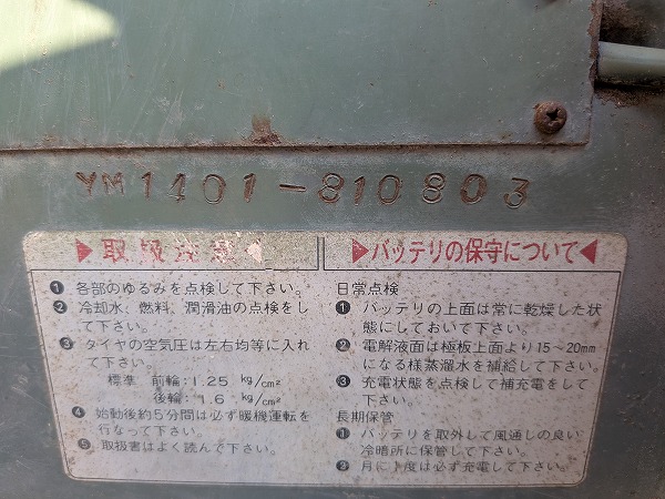 YANMAR/ YM1401S/ 810803/ 646h 2025-11-20 Spec: MAKER: YANMAR MODEL: YM1401S NUMBER: 810803 HOUR METER: 646h CONDITION: GOOD APPEARANCE AND GOOD CONDITION Inquire about this item. Note: Related posts: YANMAR/ YM2220D/ 22476/ 1301h YANMAR/ FX215D/ 26938/ 639h YANMAR/ YM1401S/ 010402/ 470h YANMAR/ F15D/ 02864/ 1382h YANMAR/ F16D/ 15652/ 468h Tractor | Tags: YANMAR